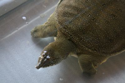 ごんたろうが復活しました。この夏はずっと調子の悪かった彼女、エサを全然食べなくなり血便まで…。どうやら神経質な彼女は水槽が狭いのがイヤだったみたいです。大事な我が家の4号、スッポンです。