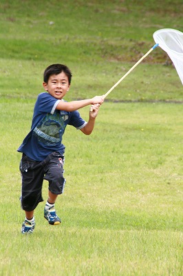 見知らぬ子から虫捕り網を借りて虫を追いかける2号、その様子を連写したら必死の形相の2号でした。本人も写真を見て照れ笑いです。