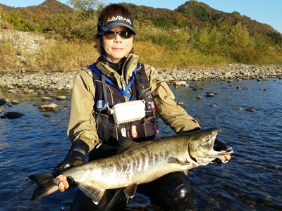 鮭様が産卵するには水温が15度以下になることが必須と聞きますが、マコトが計測した荒川1番ポイントの水温が10度でした。上流部の山頂付近では雪となり、冷た~い水が荒川へ流れ込むことで徐々に水温が下がっていくと思われます。水温が7度台に突入した時、一気に鮭様の活性が下がり釣れなくなる・・・が過去のパターンでした。